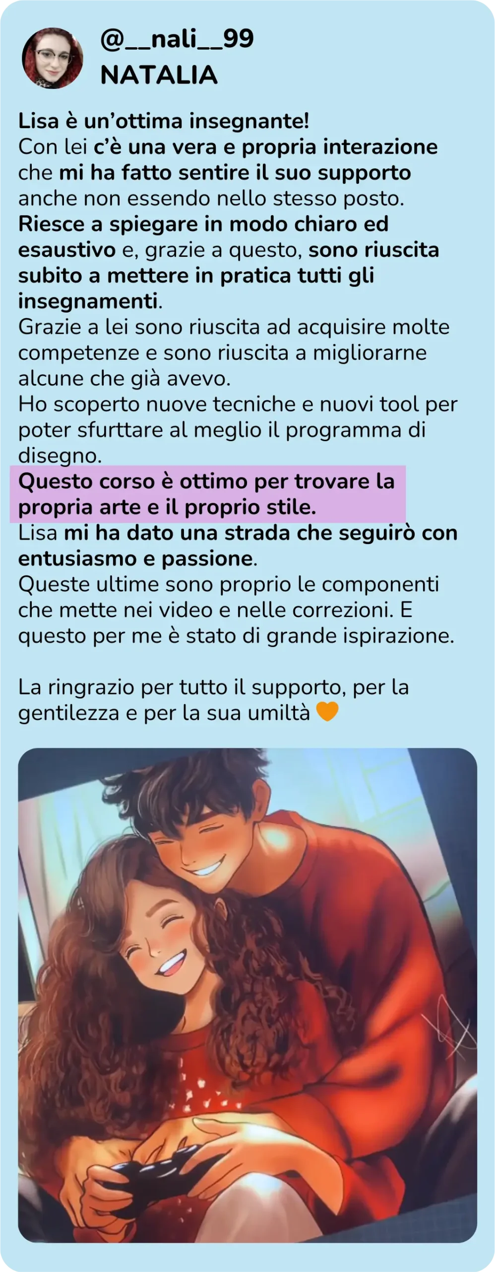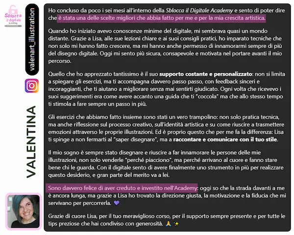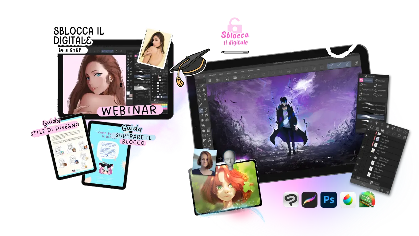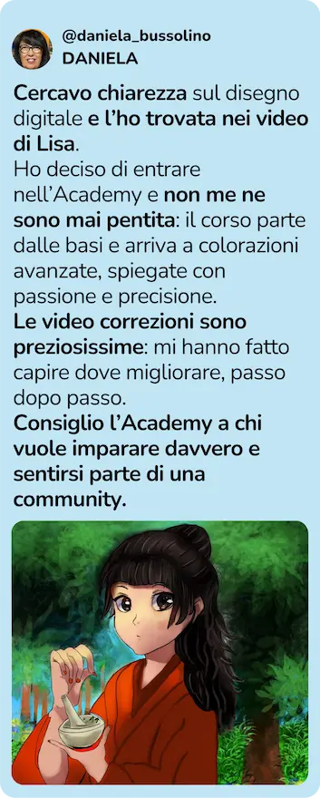 Negli ultimi quattro anni ho aiutato tante persone a scoprire il mondo del disegno digitale, attraverso corsi online, workshop e tutorial, aiutandoli a realizzare illustrazioni digitali anche se partivano da zero.